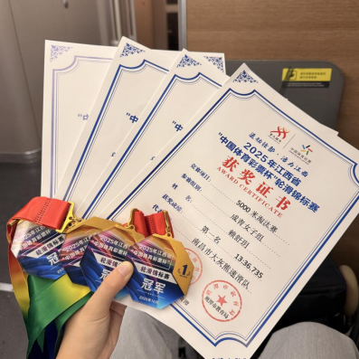 10 月 2 日至 3 日,2025 年江西省“中国体育彩票杯”轮滑锦标赛在鹰潭市信江生态体育公园轮滑场开赛。江西科技师范大学元宇宙产业学院 2023 级数字媒体艺术 1 班赖舒玥同学表现亮眼,在速滑项目中强势包揽 300 米、500 米、1000 米、5000 米四项冠军,以实力展现青春风采。