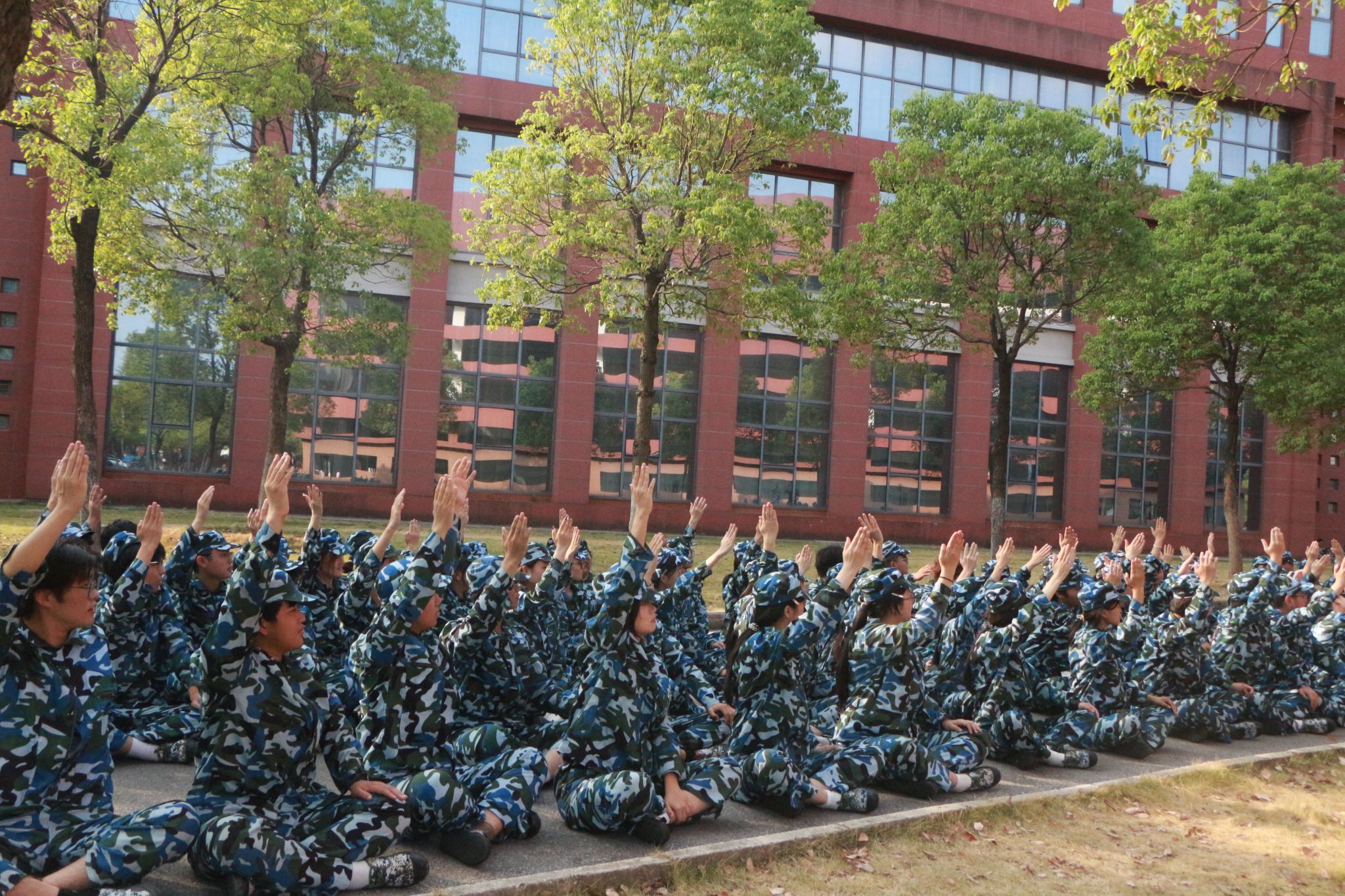 10 月 14 日,训练场上气氛热烈非凡。身着整齐迷彩服的同学们精神抖擞、席地而坐,构成校园里一道亮眼的风景线。拉歌作为军训传统文艺活动,不仅是歌声的比拼,更是团队凝聚力、集体荣誉感与战斗精神的集中彰显。活动在教官铿锵有力的指挥下拉开序幕,“听吧新征程号角吹响!” 随着《强军战歌》熟悉的旋律响起,各连队方阵瞬间爆发出洪亮歌声,气势如虹、响彻云霄。脍炙人口的军旅歌曲被同学们演绎得饱含力量与激情,唱出对祖国的热爱,也传递出对强军事业的理解与支持,现场掌声、欢呼声、呐喊声此起彼伏,热烈氛围持续升温。