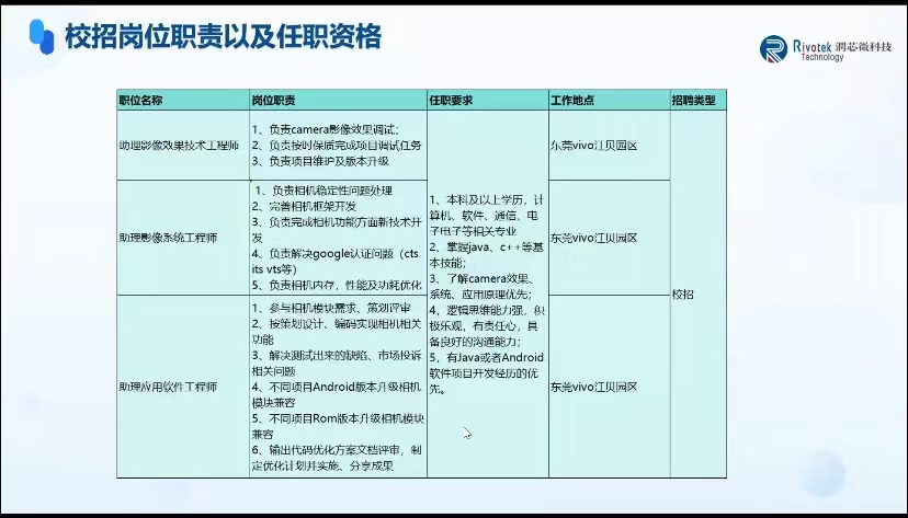 招聘会上,芯微科技(江苏)有限公司校招负责人首先向同学们介绍了芯微科技(江苏)有限公司的企业文化、发展经历、运营规模、优秀团队以及人力资源等基本信息。随后,重点介绍了企业校招岗位职责、任职资格、薪酬福利、以及入职后人才培养晋升模式等。